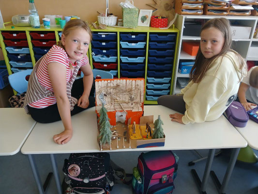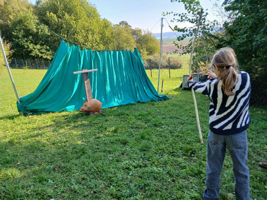 Beim Bogenschießen zeigten die Jungs dann, was sie können. Da gab es einige, die das richtig gut konnten. Aber beim Bumerang- und Keulenwerfen (Hasenjagd, versteht sich), war Emma nicht zu schlagen. Sie traf den (Holz-)Hasen jedes Mal.